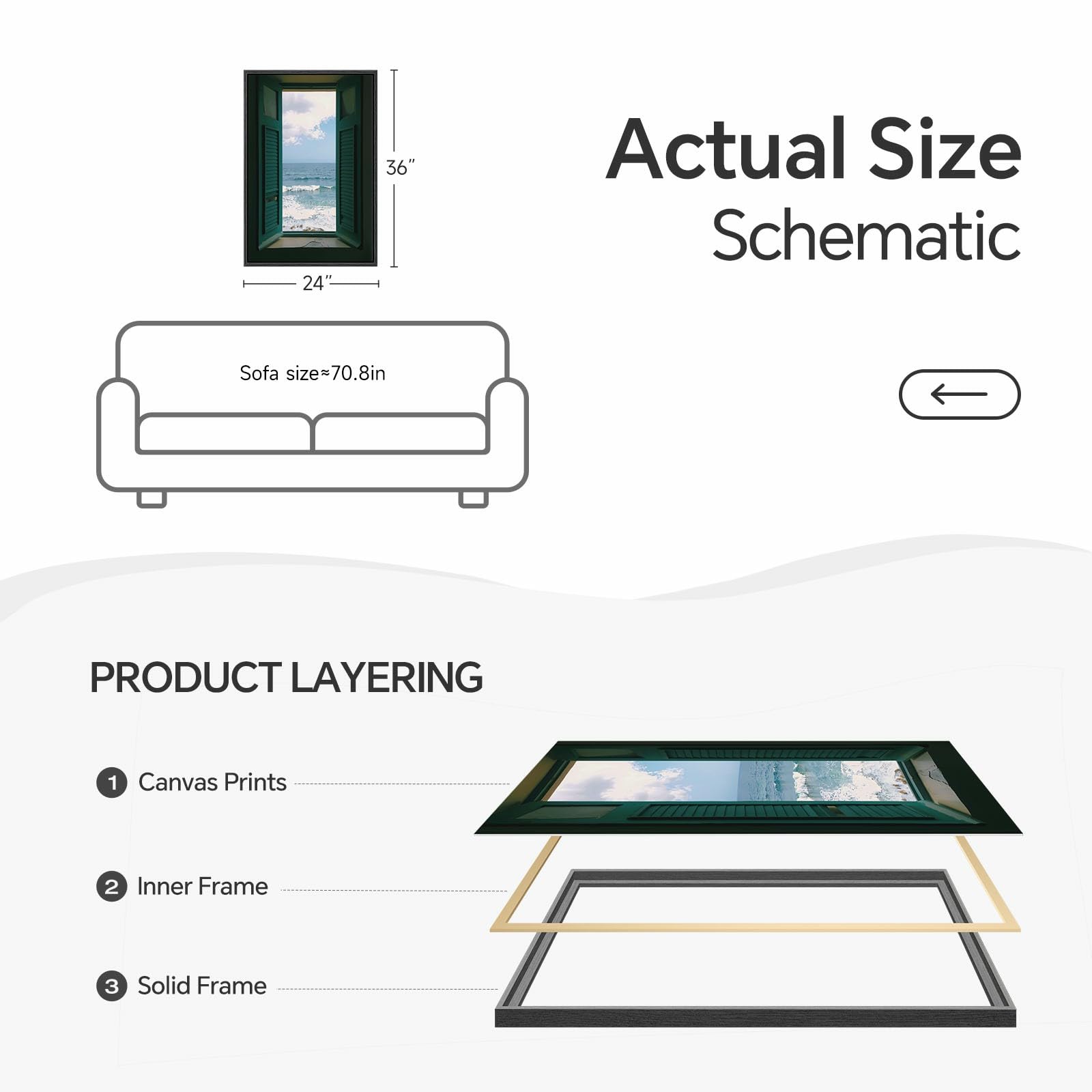 - [Framed Wall Art]: Discover three impressive blue ocean canvas artworks, each 24"x36". Total size: 36"H x 72"W. Sturdy white frames seamlessly match the coastal prints