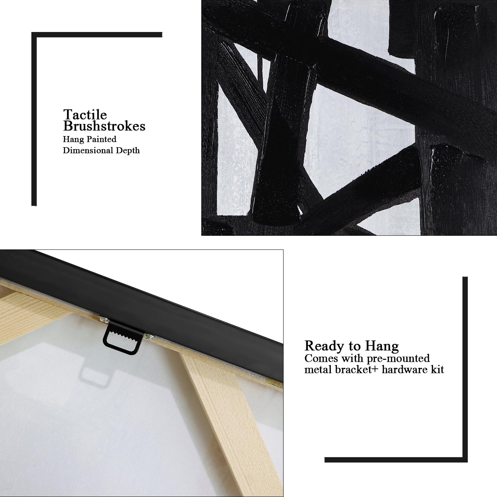 - Easy to Hang- Each piece comes with pre-mounted metal bracket+ hardware kit containing: White No-Mark Nails(for drywall/plaster) and Classic Nails(for concrete/brick),Simply setup under 12 minutes