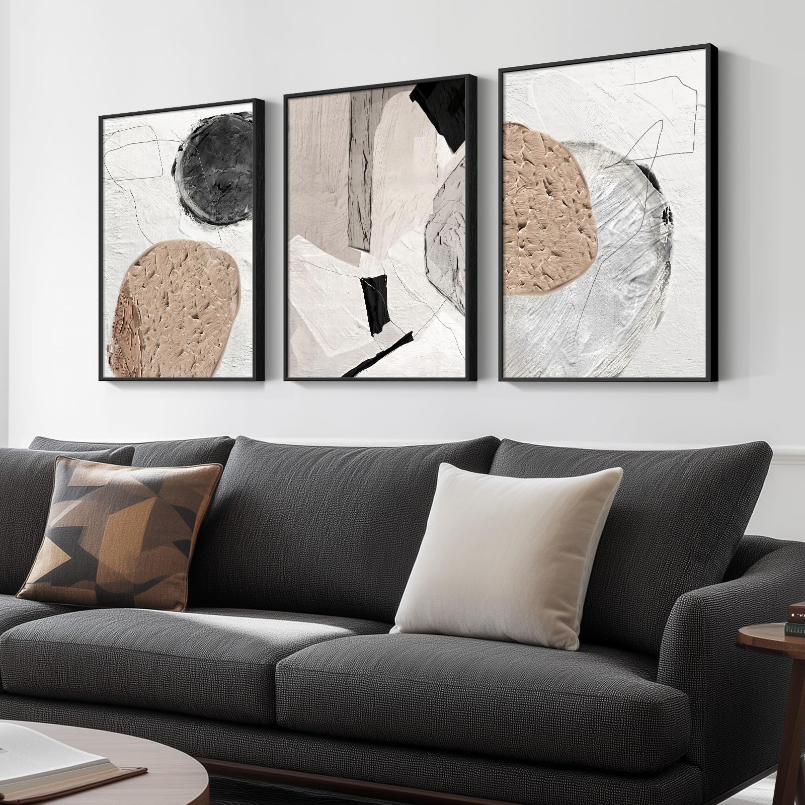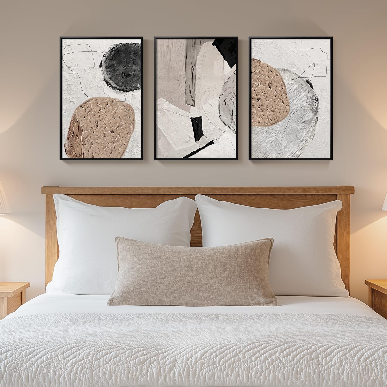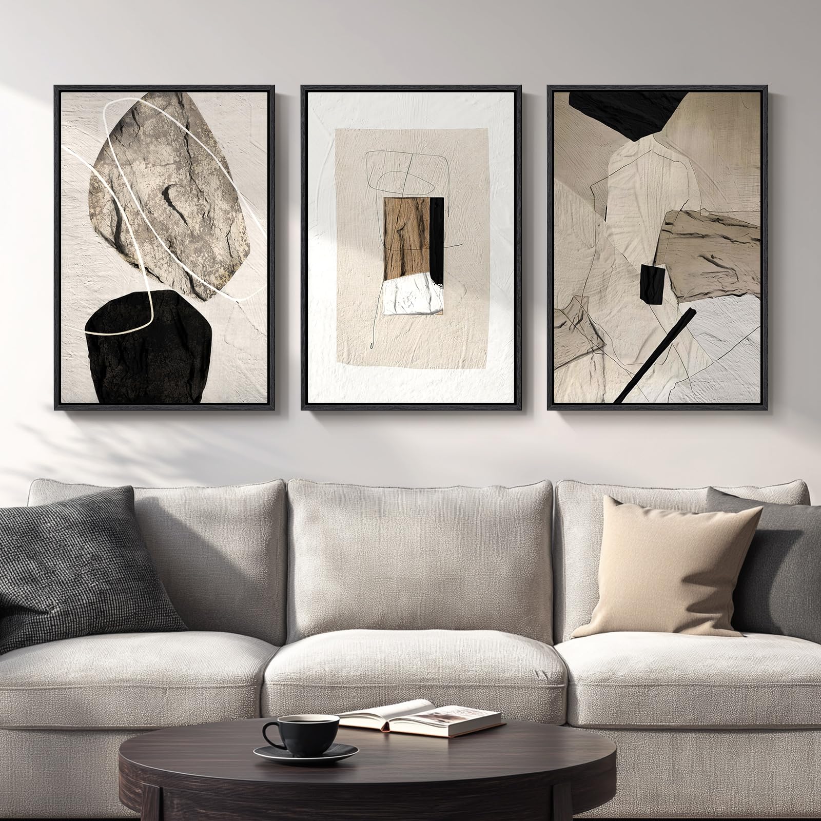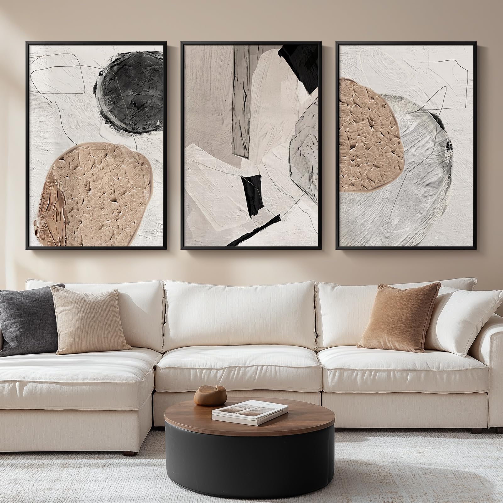 - [Framed Wall Art]: Set of 3 large framed neutral abstract wall art, each measuring 24x36 inches, each painting with a sturdy frame