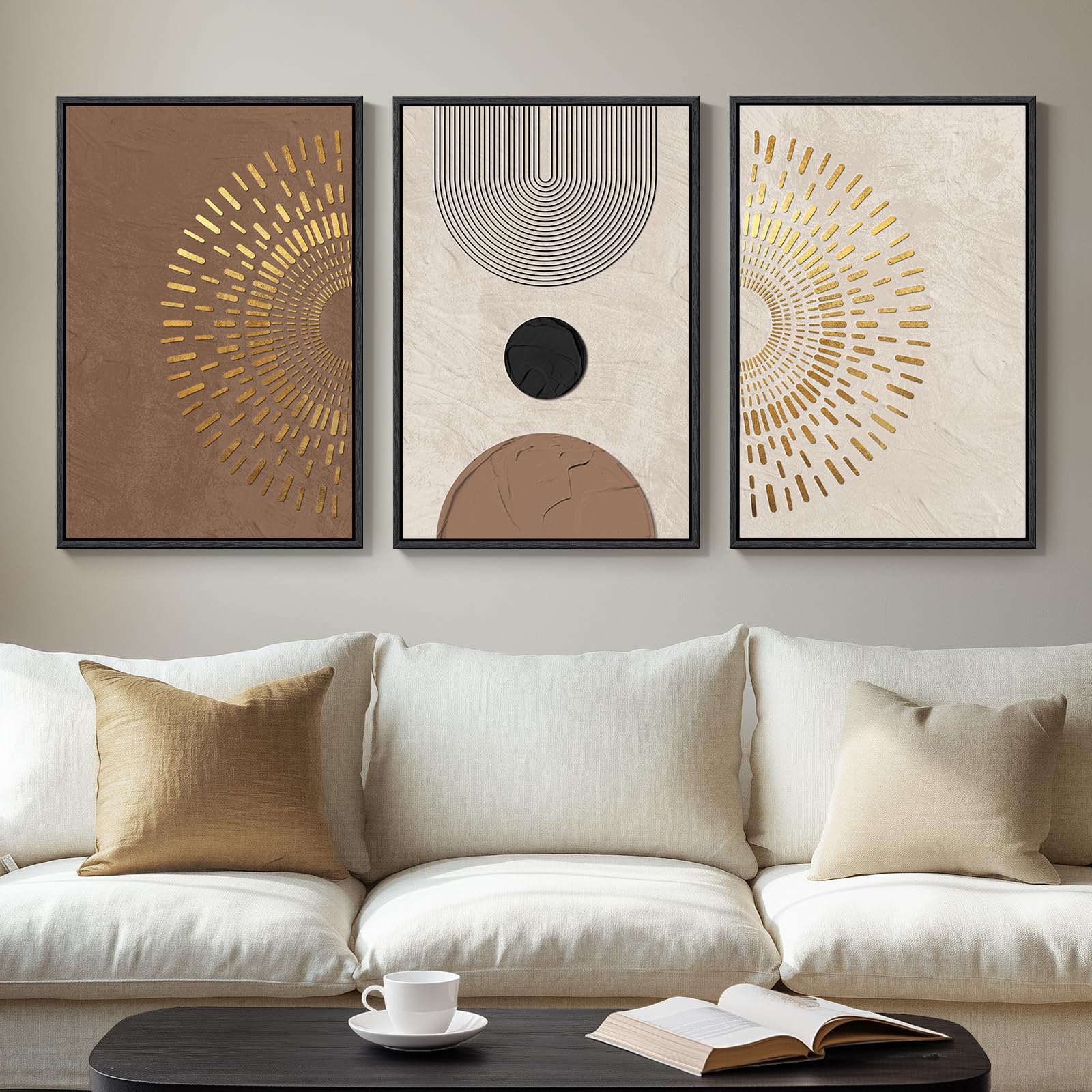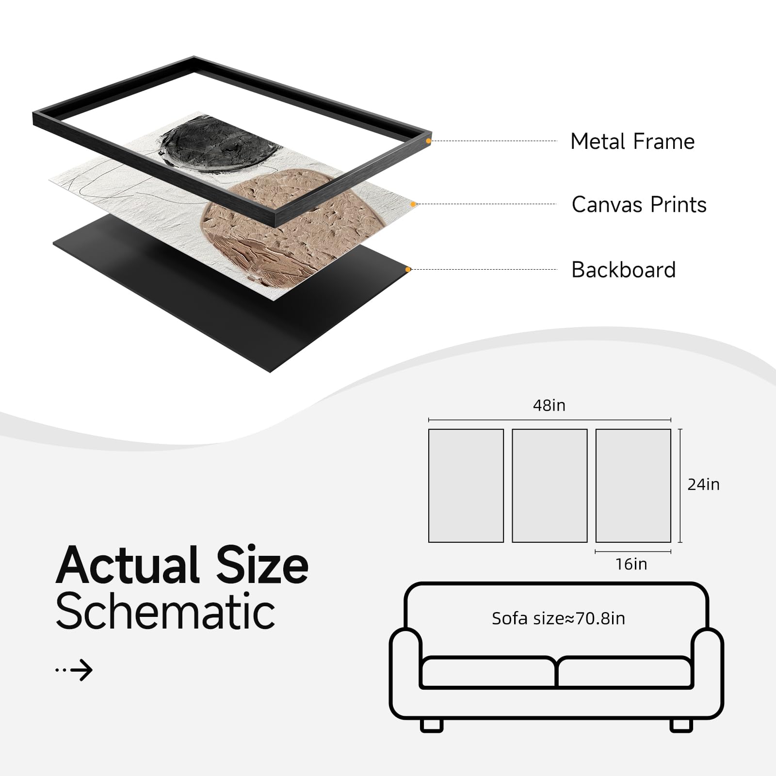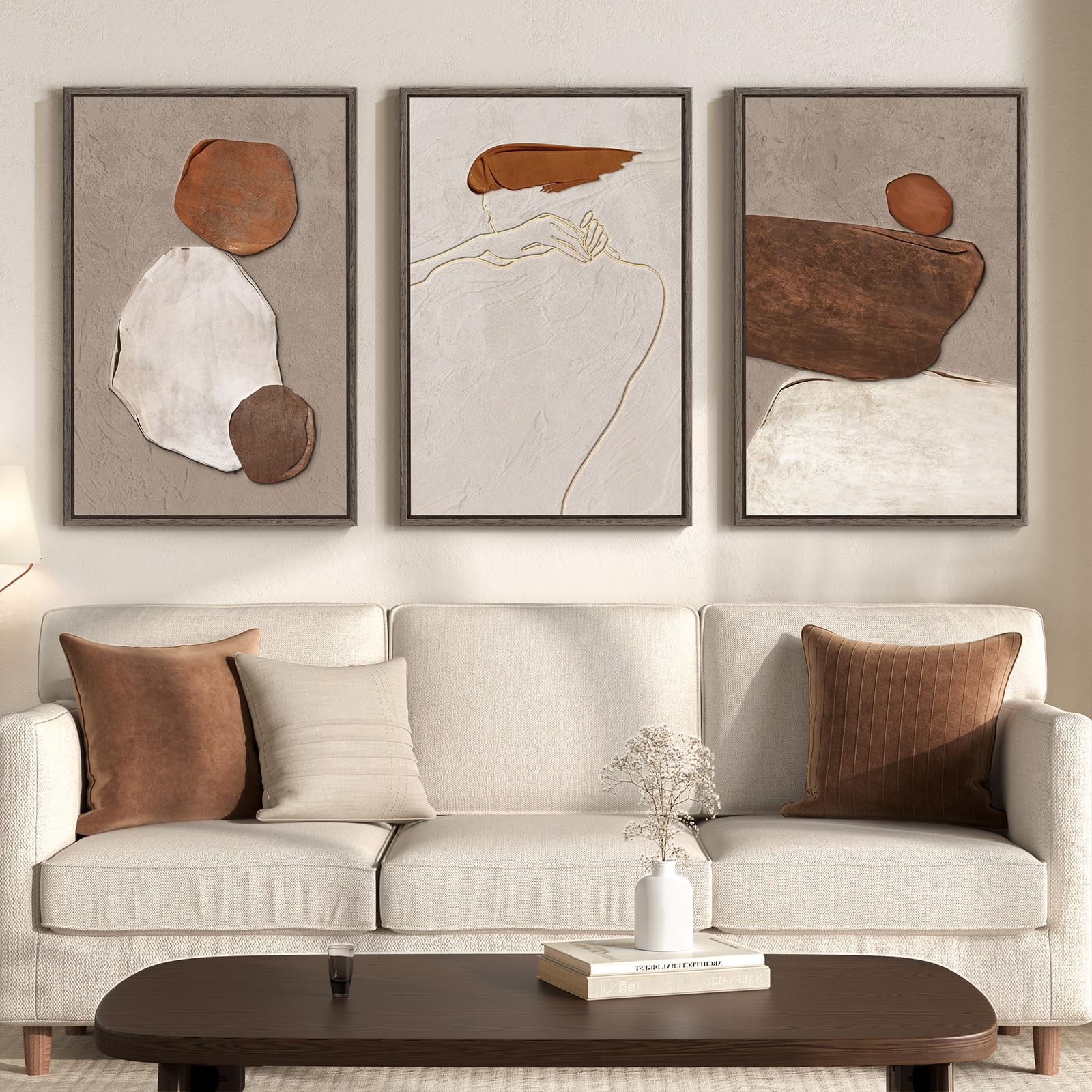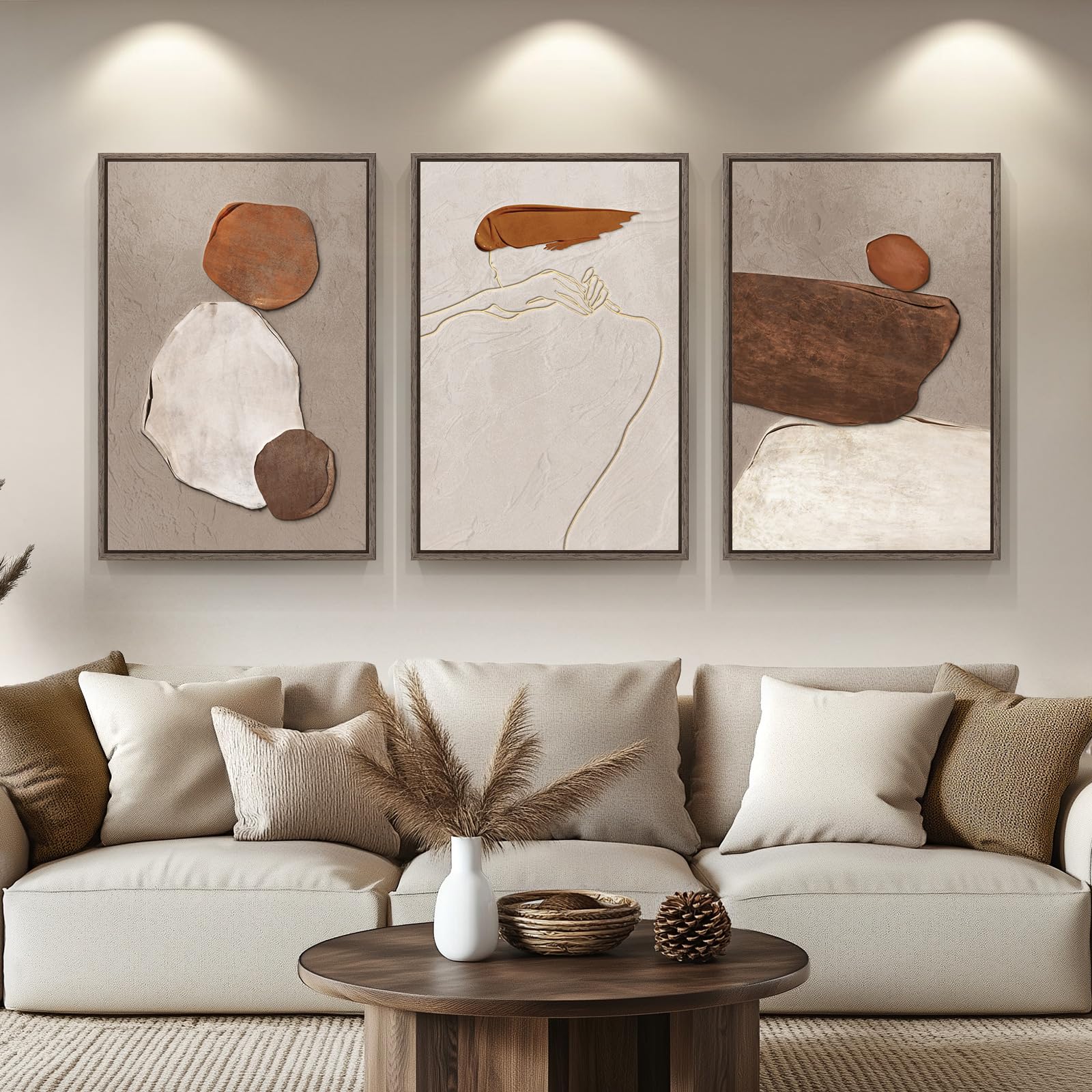 - [Framed Wall Art]: Set of 3 large framed neutral abstract wall art, each measuring 24x36 inches, each painting with a sturdy frame