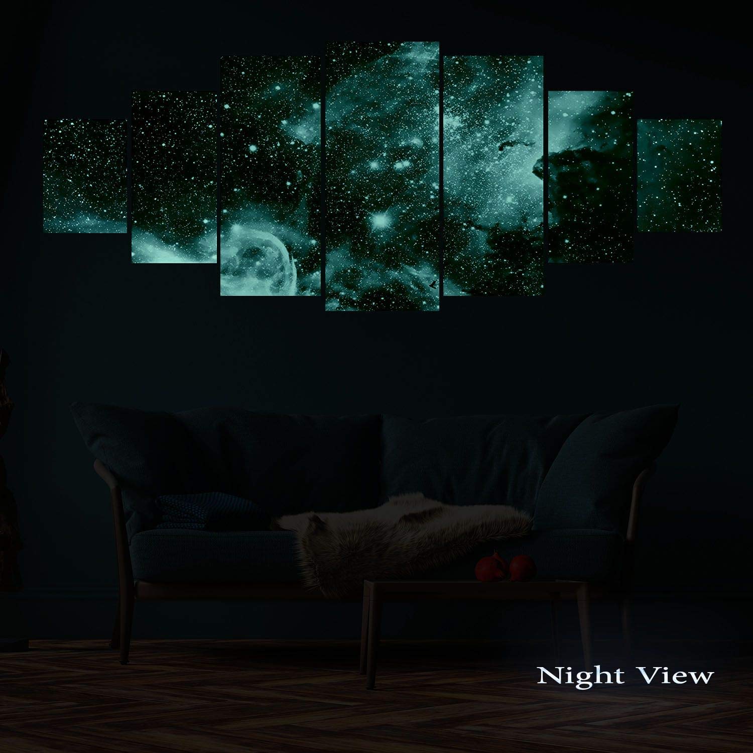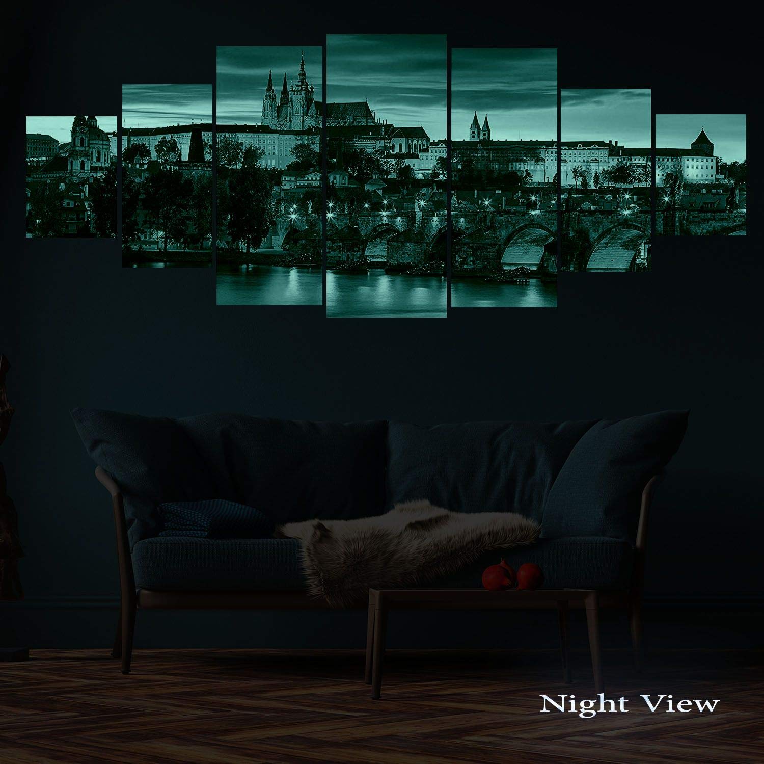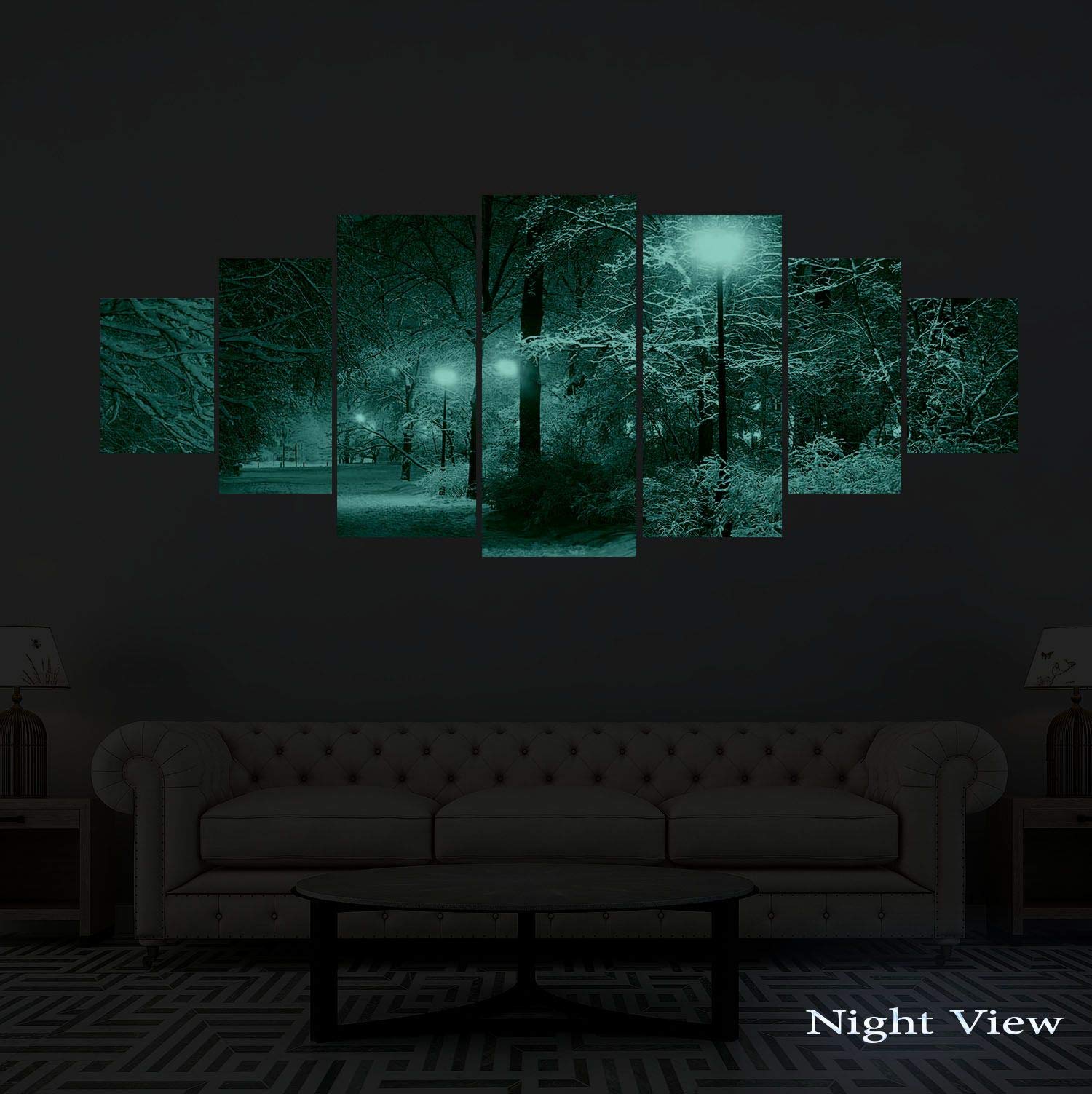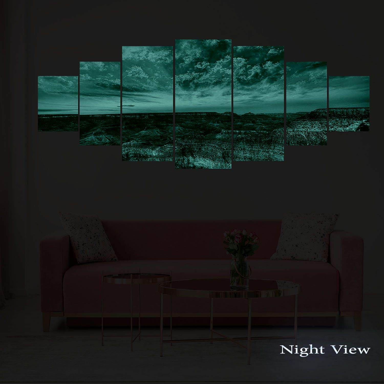 - Landscape artworks outline a romantic personality; Especially, this Blue Mountain Lake glass wall art it’s a trend setter in its category with a powerful message; YOU will also discover the Dual View feature of the painting; It gently glows in the dark for up to 8 hours