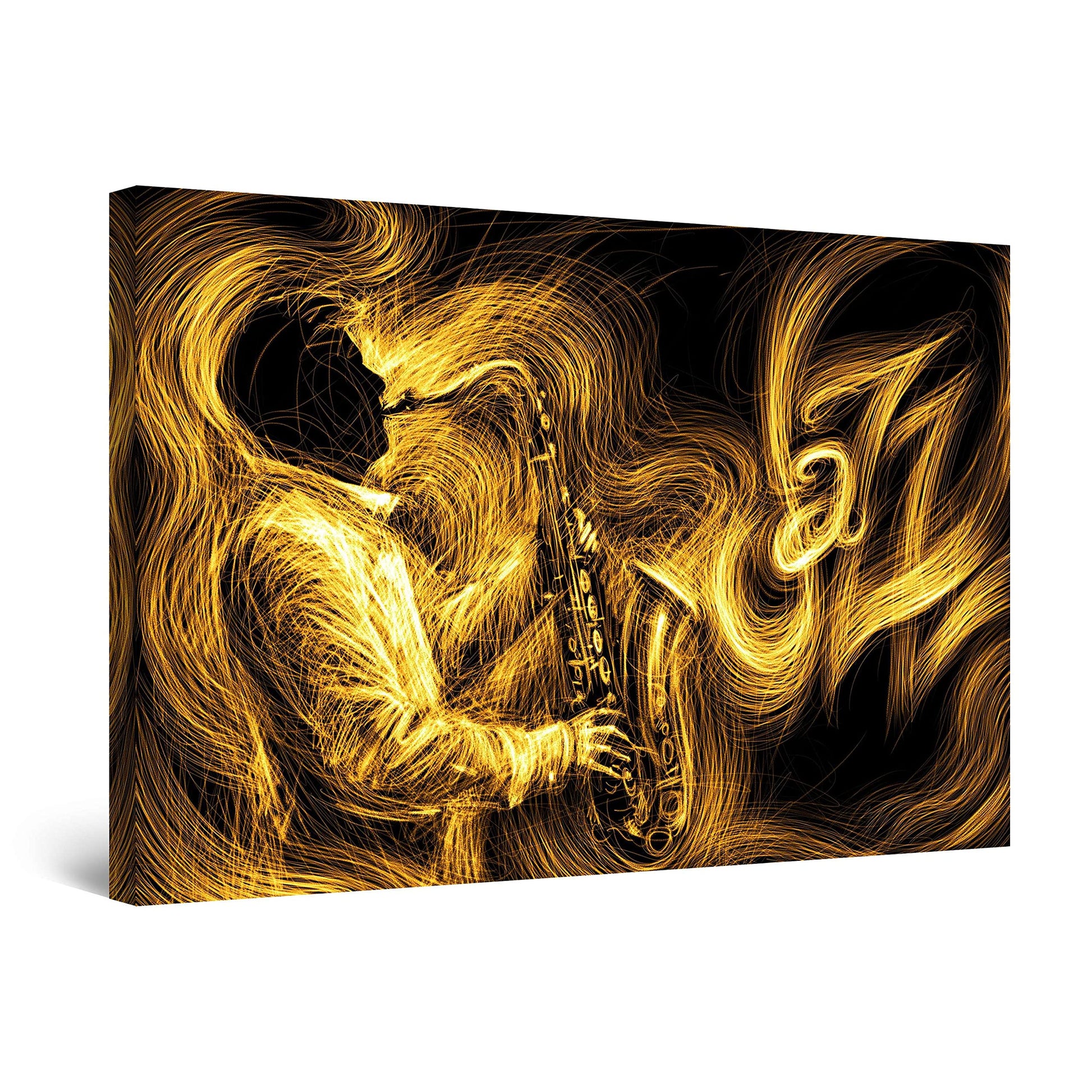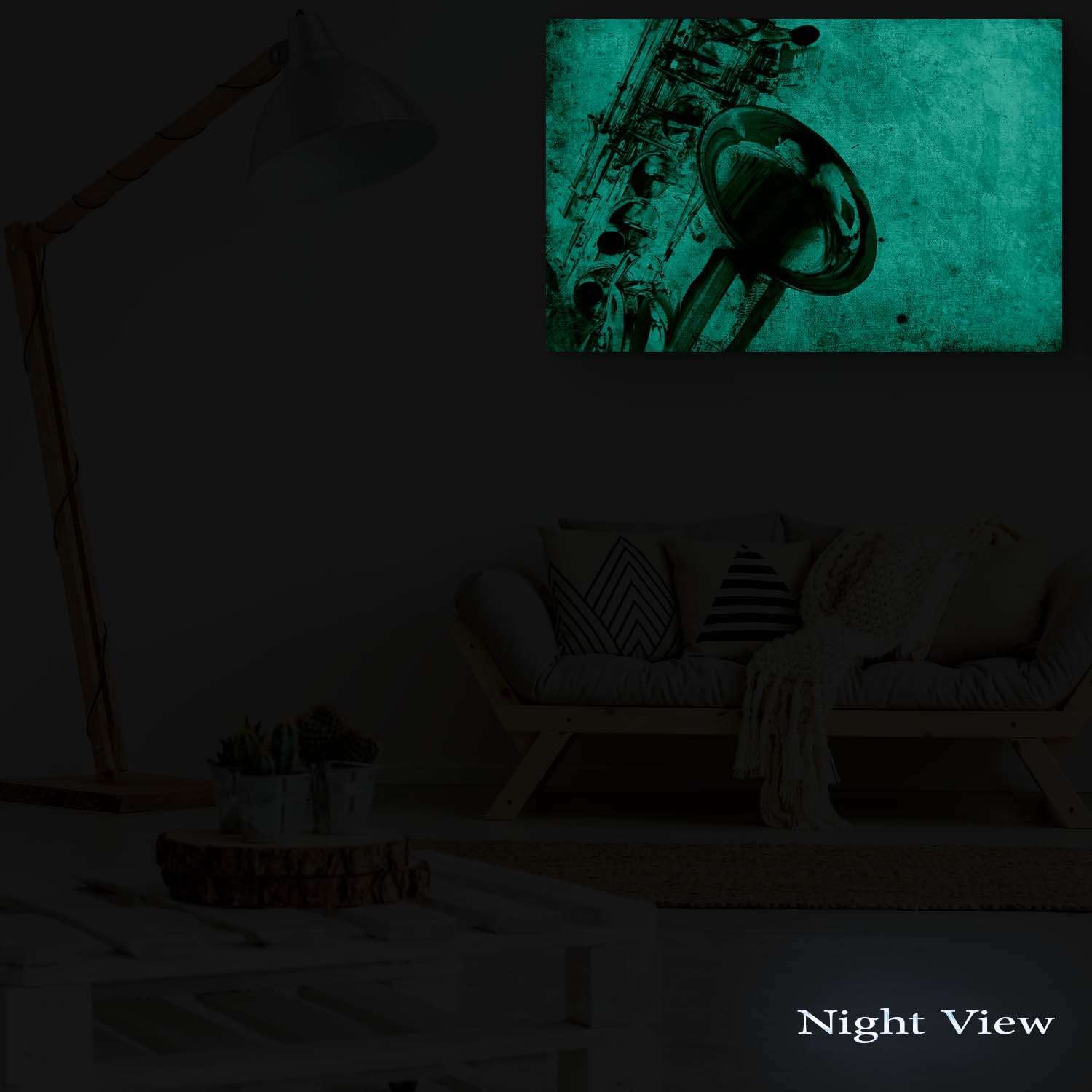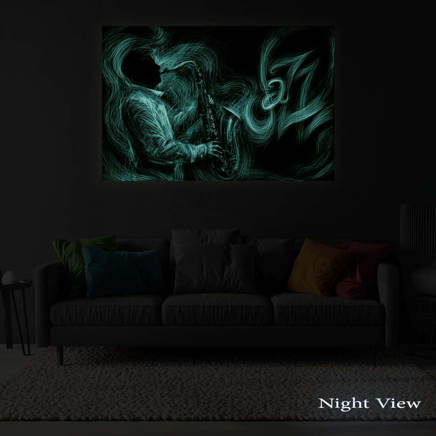 - Urban artworks outline a creative personality; Especially, this Grunge Saxophone Gold Retro Music wall art canvas it’s a trend setter in its category with a powerful message. YOU will also discover the Dual View feature of the painting. It gently glows in the dark for up to 8 hours