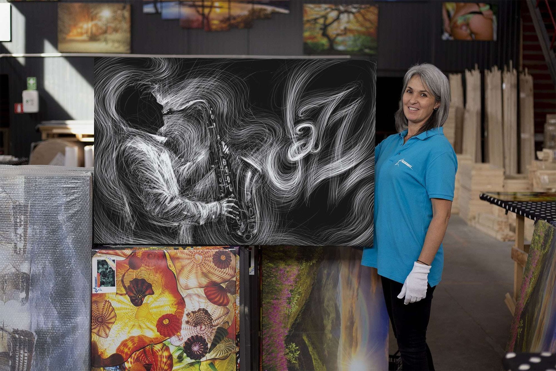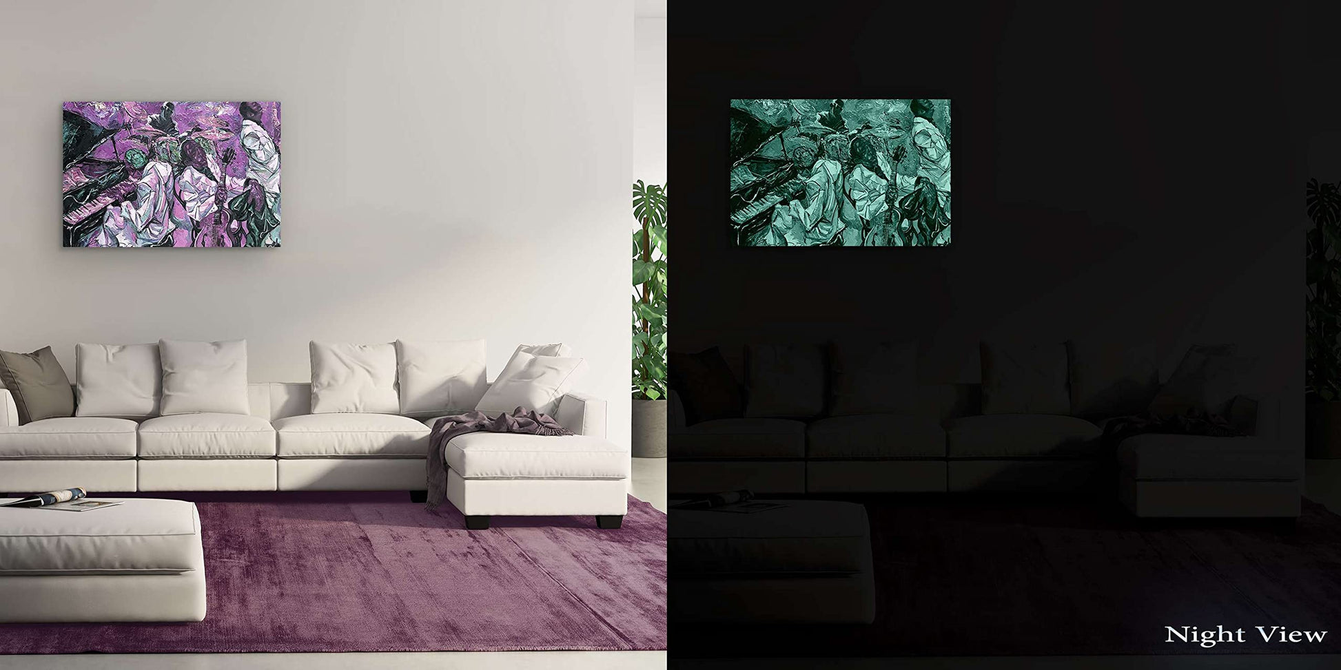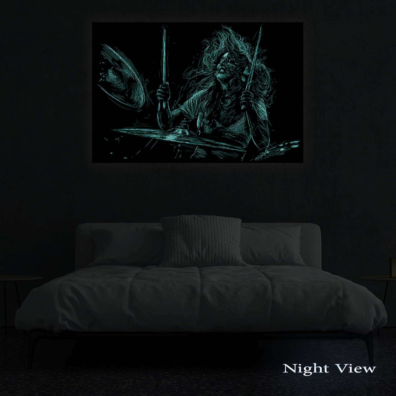 - Urban artworks outline a creative personality; Especially, this Grunge Saxophone Gold Retro Music wall art canvas it’s a trend setter in its category with a powerful message. YOU will also discover the Dual View feature of the painting. It gently glows in the dark for up to 8 hours