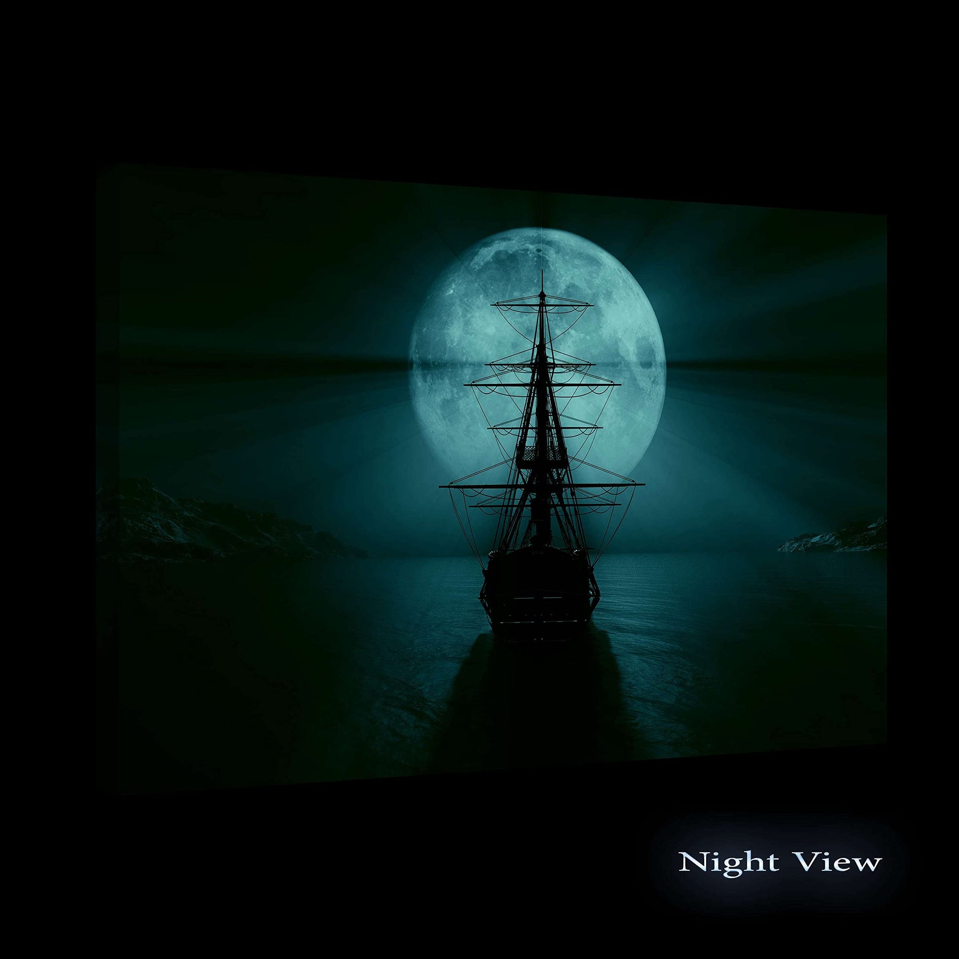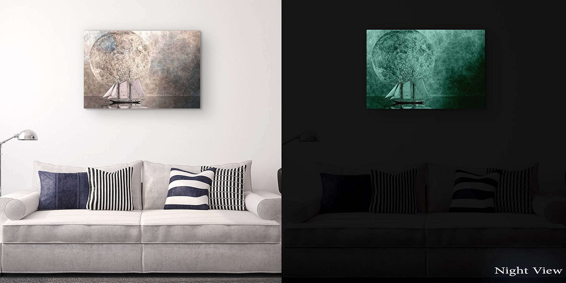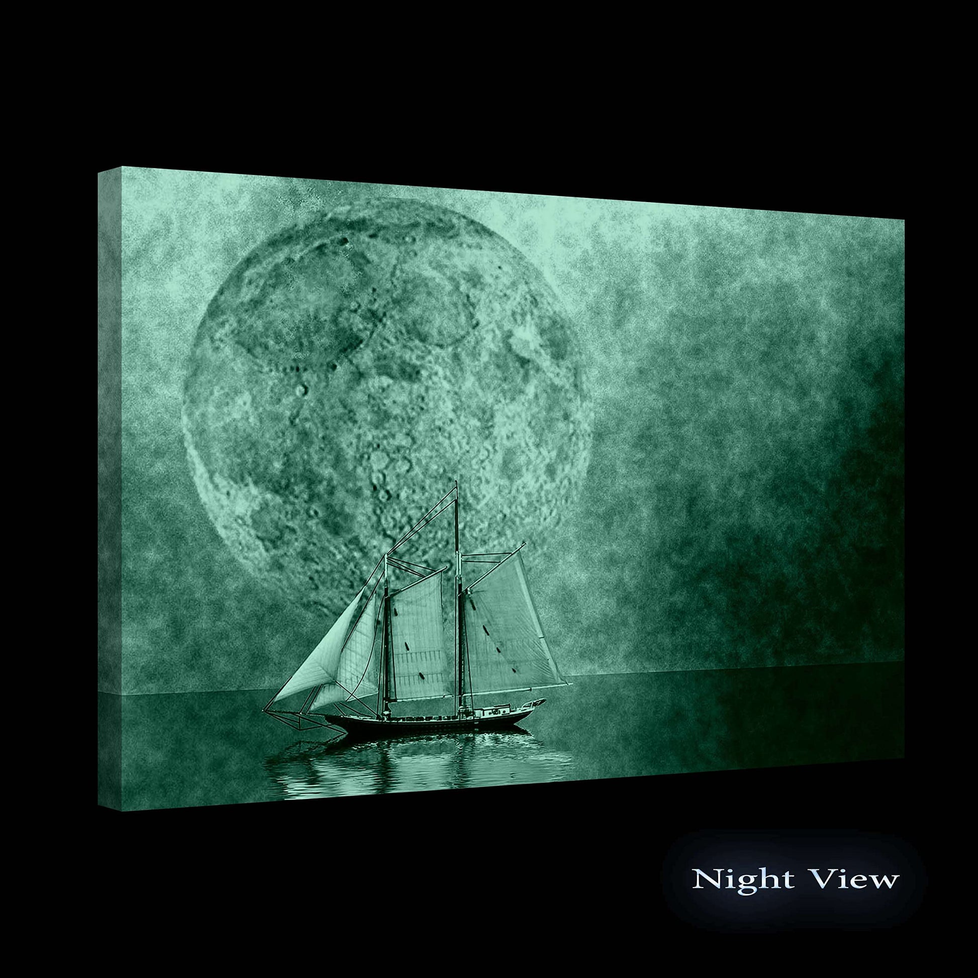 - Black and White artworks outline a strong personality. Especially, this Ocean, Ship and The Moon wall art canvas it’s a trend setter in its category with a powerful message. YOU will also discover the Dual View feature of the painting. It gently glows in the dark for up to 8 hours
