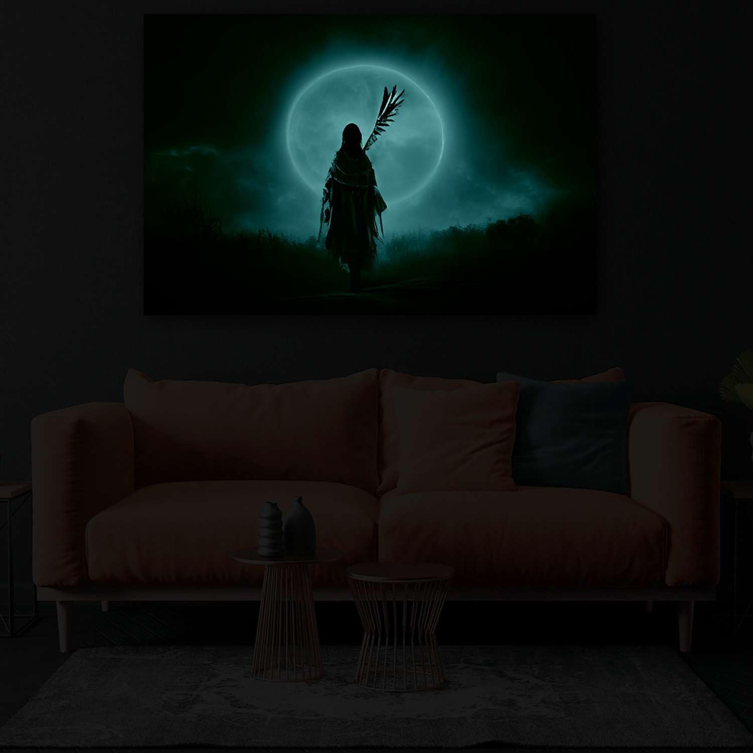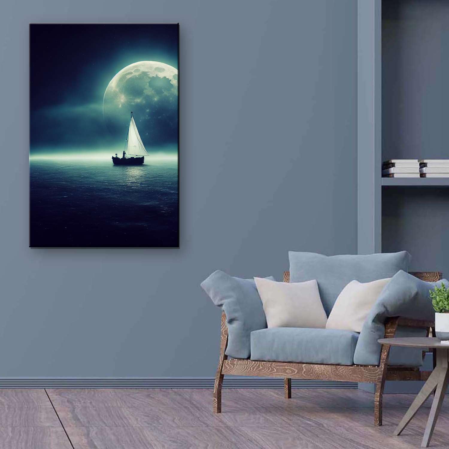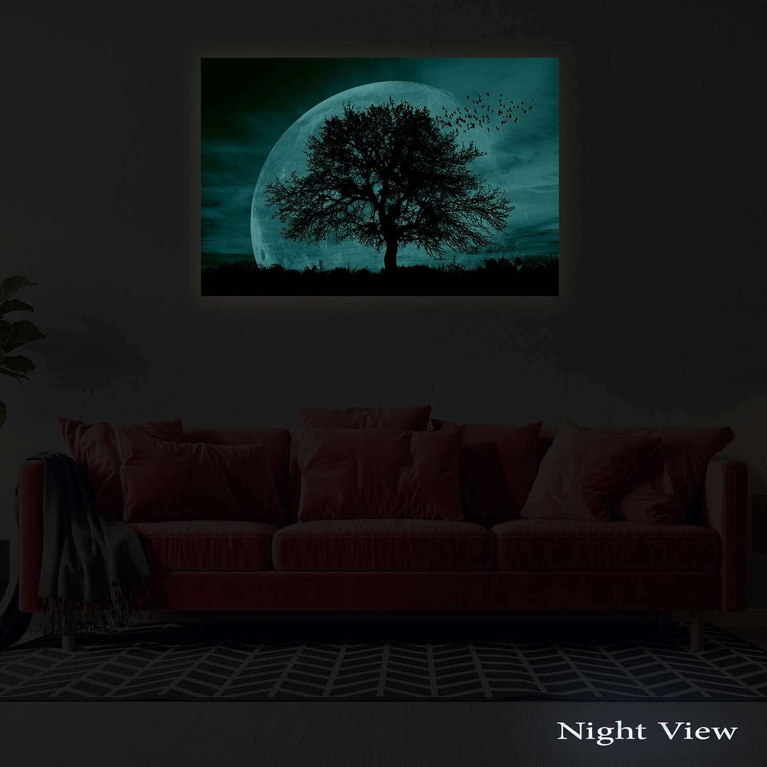- Black and White artworks outline a strong personality. Especially, this Ocean, Ship and The Moon wall art canvas it’s a trend setter in its category with a powerful message. YOU will also discover the Dual View feature of the painting. It gently glows in the dark for up to 8 hours