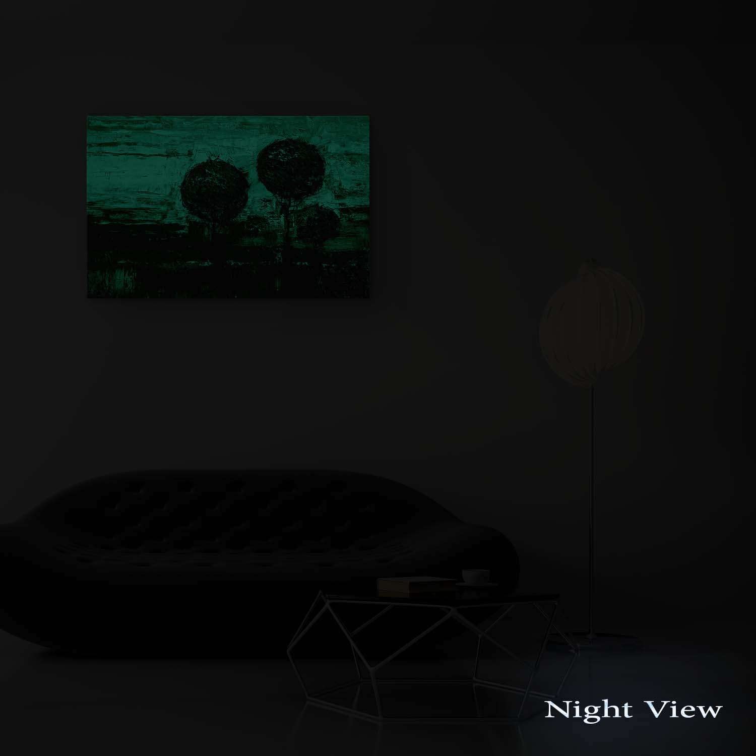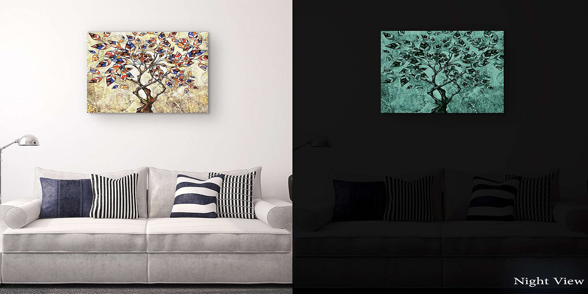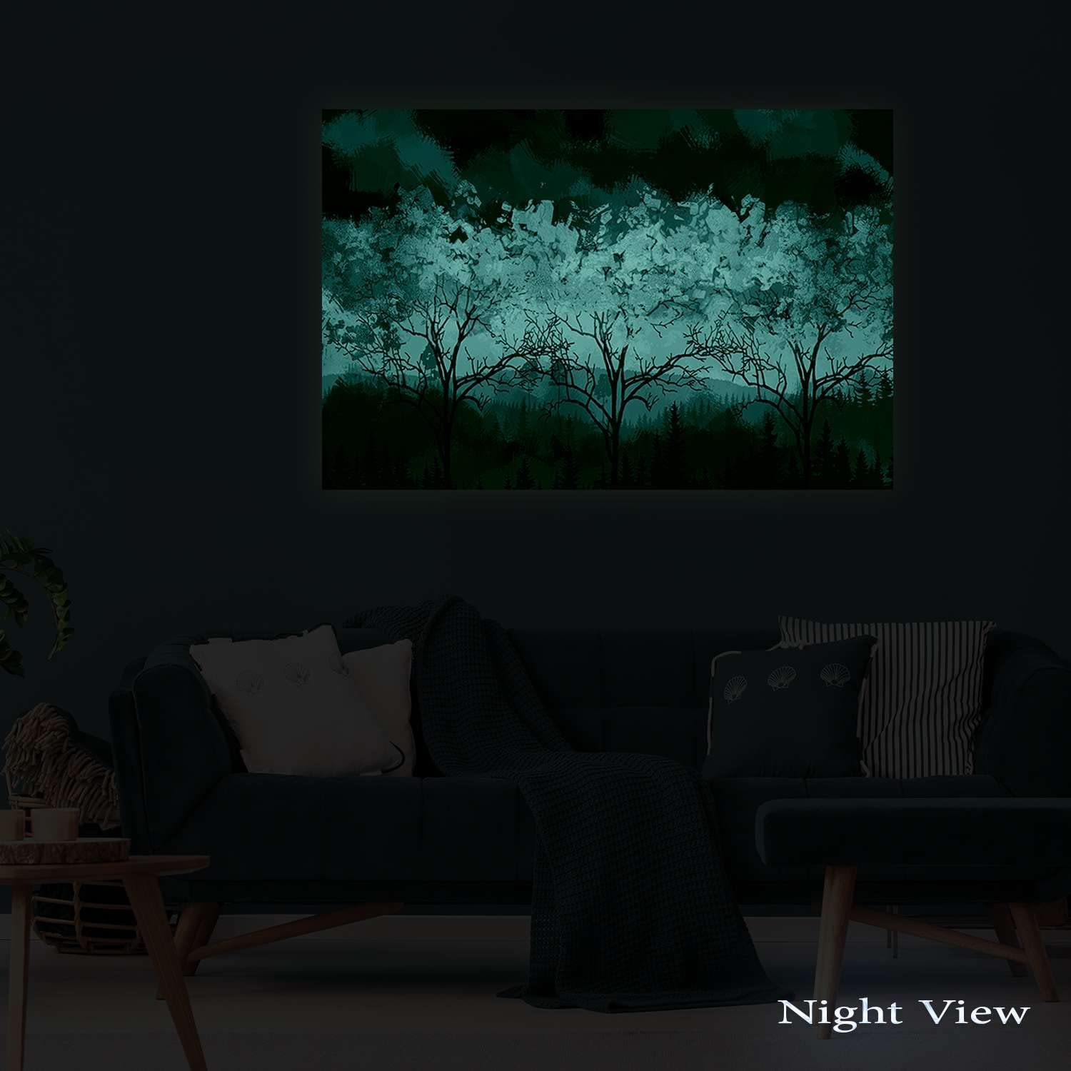 - Abstract artworks outline a strong personality. Especially, this Golden Forest wall art canvas it’s a trend setter in its category with a powerful message. YOU will also discover the Dual View feature of the painting. It gently glows in the dark for up to 8 hours