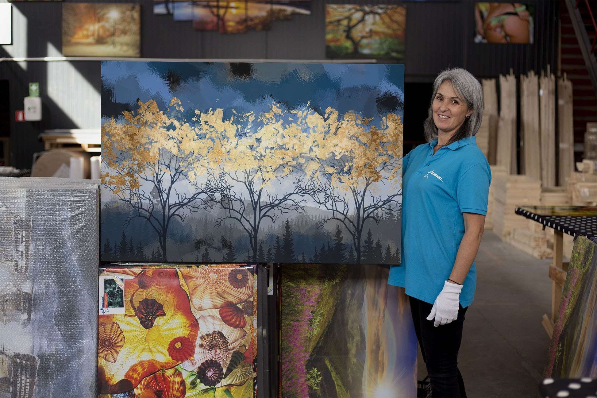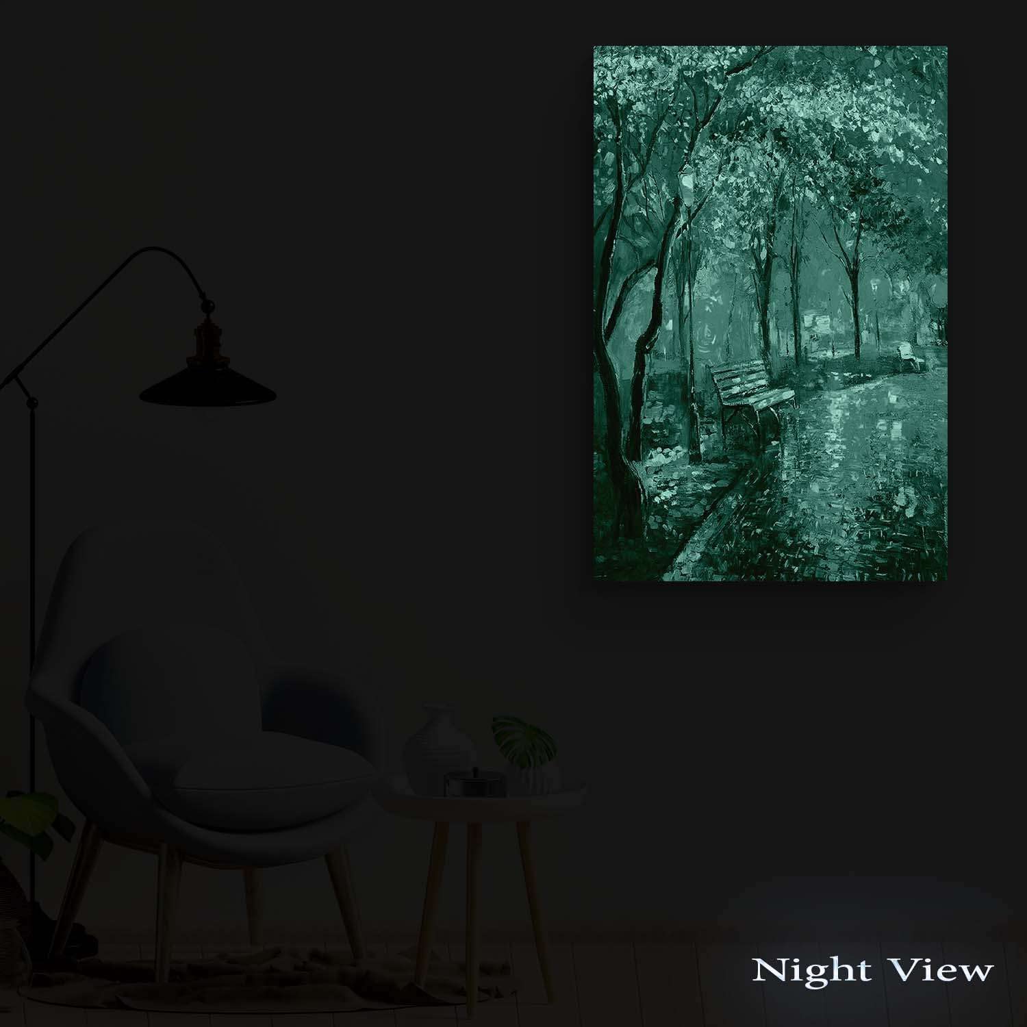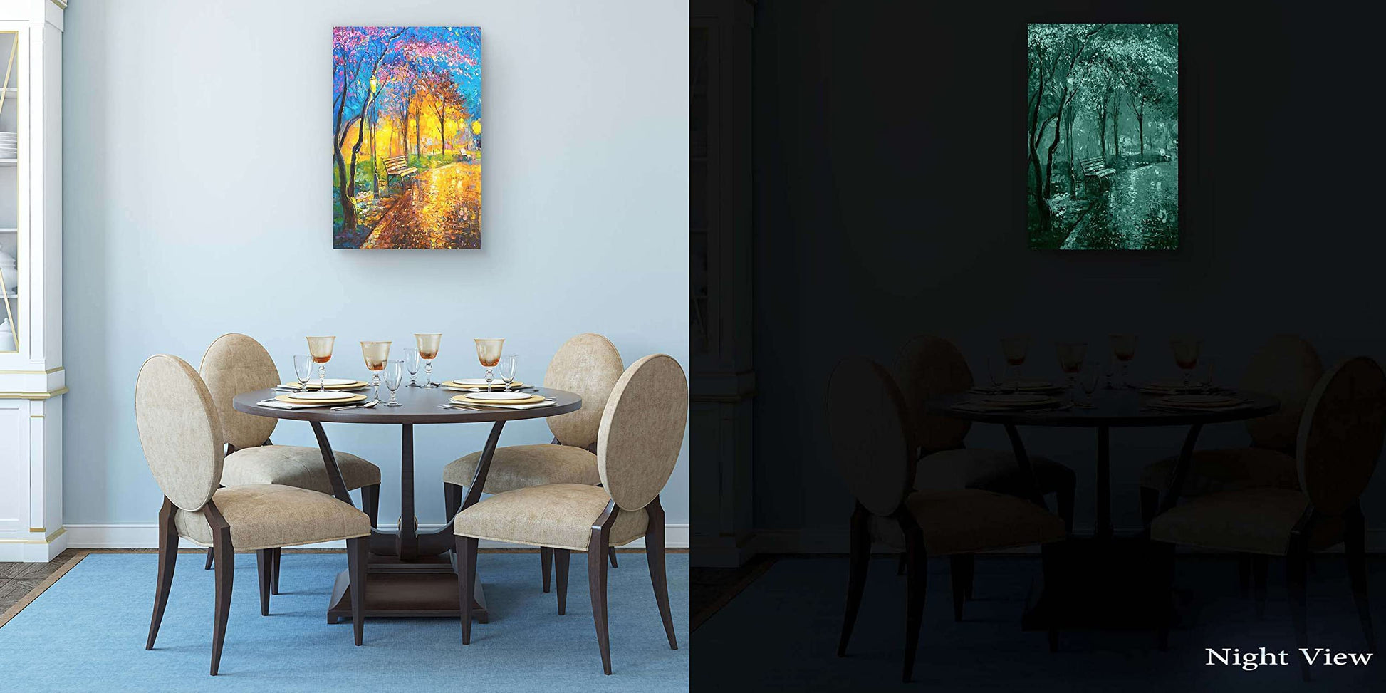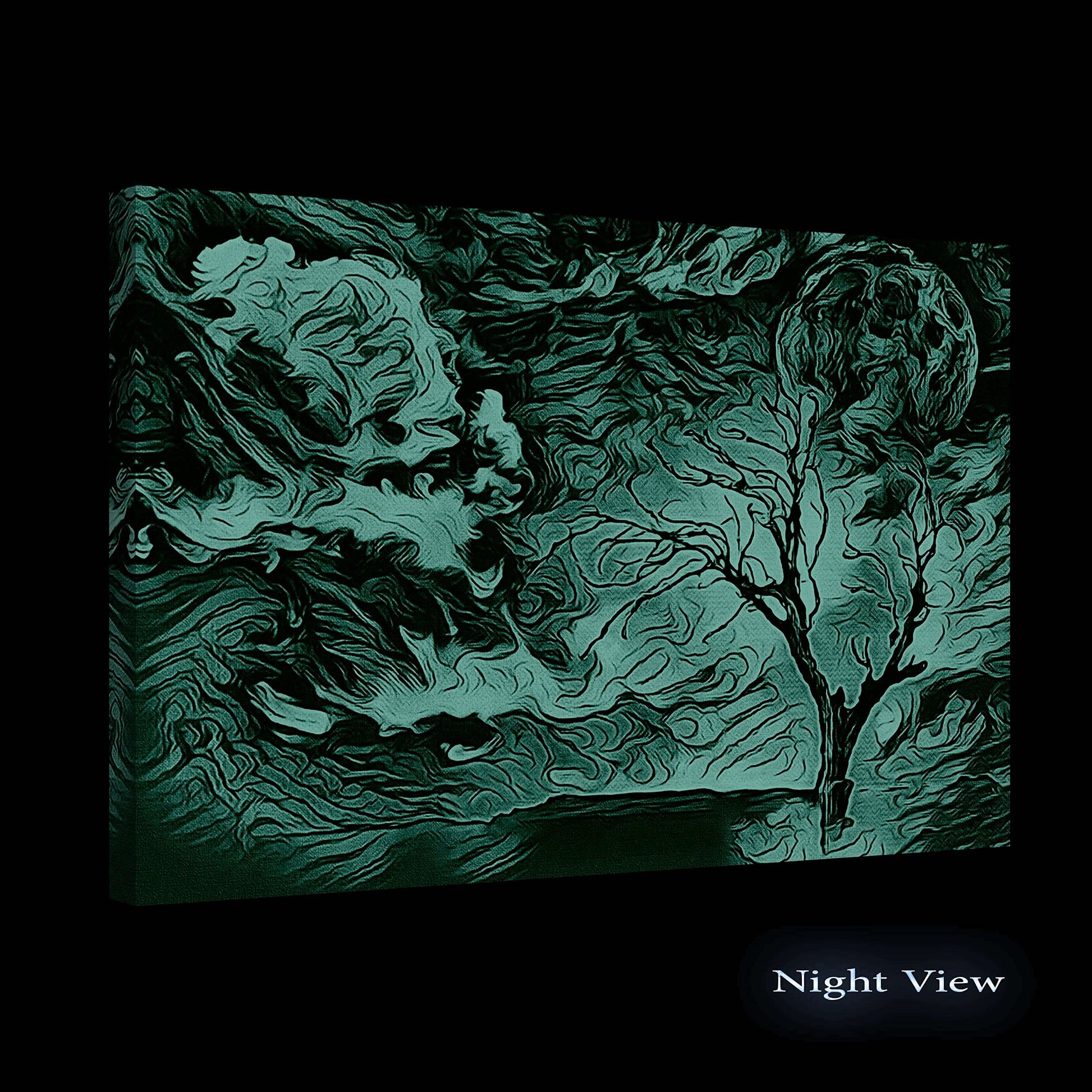- Abstract artworks outline a strong personality. Especially, this Golden Forest wall art canvas it’s a trend setter in its category with a powerful message. YOU will also discover the Dual View feature of the painting. It gently glows in the dark for up to 8 hours
