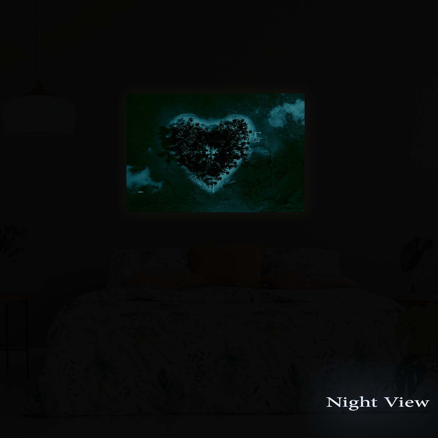- Landscape artworks outline a romantic personality; Especially, this Caribbean Beach glass wall art it’s a trend setter in its category with a powerful message; YOU will also discover the Dual View feature of the painting; It gently glows in the dark for up to 8 hours